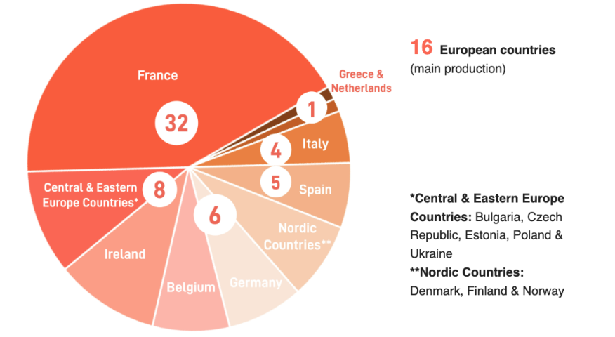 - 20 countries in total: 16 European countries as main producers + Canada, China, North Macedonia, United Kingdom as co-producers.