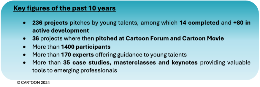 For this edition, Cartoon Springboard celebrated its 10th anniversary! This milestone marked a decade of nurturing creativity, where young talents’ projects have been pitched, many of which have gone on to be featured in major co-production events like Cartoon Forum and Cartoon Movie.